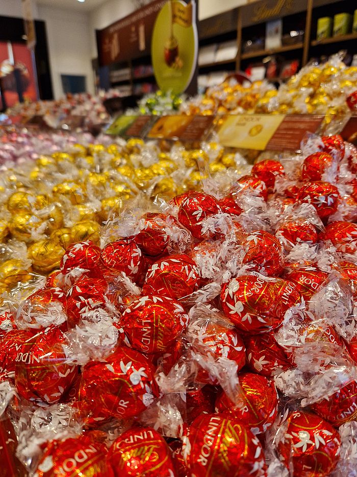 Das Sortiment ist beeindruckend: von klassischen Lindt-Tafeln und -Boxen über schöne Geschenkideen bis hin zur Pick & Mix Bar, an der man sich seine Lieblingskugeln ganz individuell zusammenstellen kann, gibt es wirklich alles! Auch neue Kollektionen haben hier ihren Platz - aktuell sorgt die Dubai-Schokoladenkollektion mit besonderen Sorten für zusätzliche Auswahl.