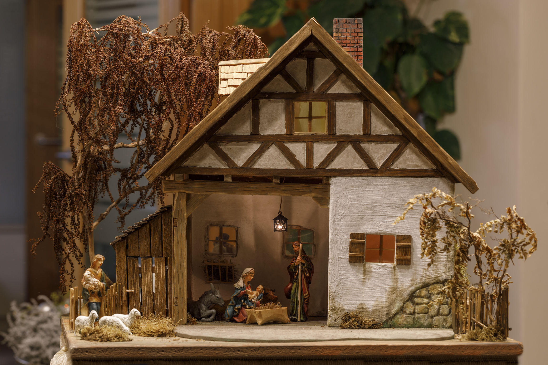 Besondertheit: Simultankrippe (Vorderseite „Heilige Nacht“ und Rückseite „Herbergssuche“ zu sehen im Innenraum)