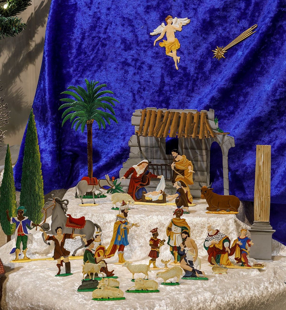 Vorbild der bemalten Krippenfiguren aus Zinn ist die originale Holzkrippe im Marienmünster in Dießen am Ammersee, die vom Weilheimer Bildhauer Franz Xaver Schmädl (1705-1777) als eine der schönsten Rokoko-Krippen geschaffen wurde.
