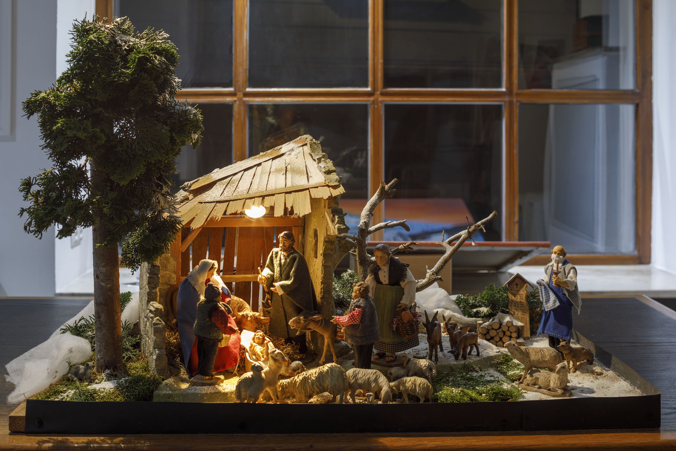 Figuren: 18 cm-Gliederfiguren aus Südtirol (Fa. Heide) Bekleidet im Jahr 2018 durch Frau Maximiliane Glas
