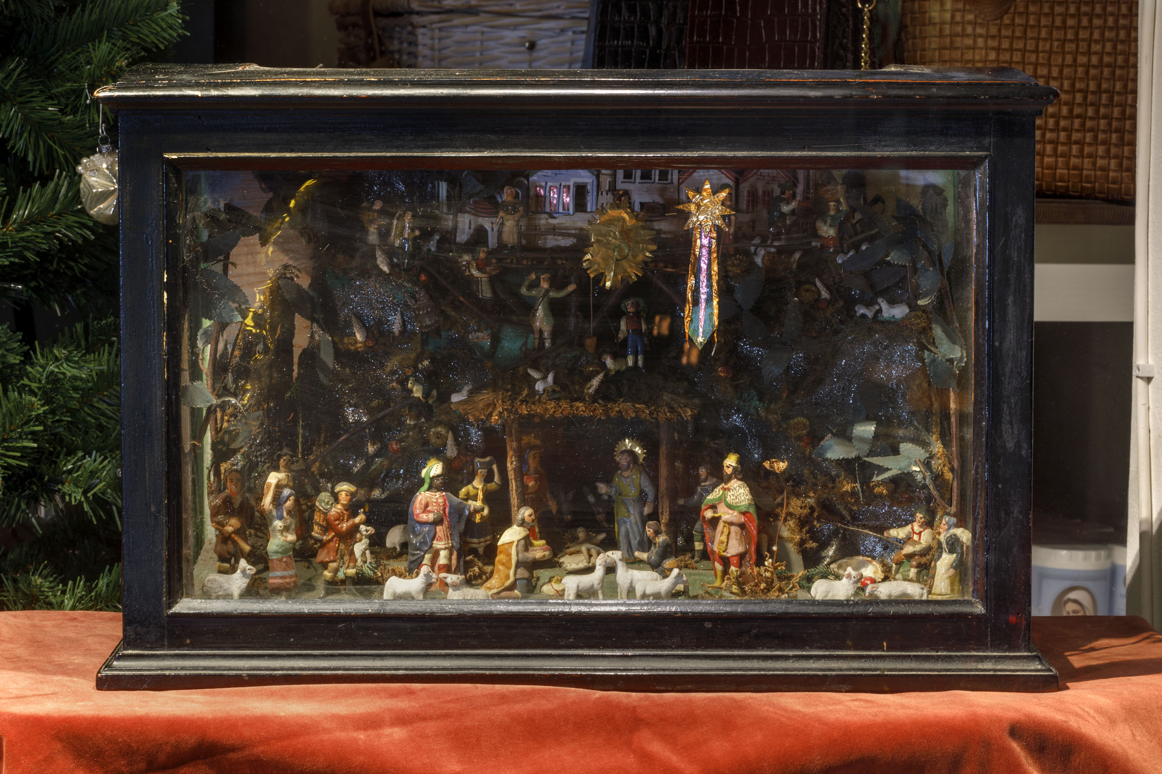 Besonderheit: Krippenberg in Leim getränktes Papier, gefasst mit Glitzerstaub