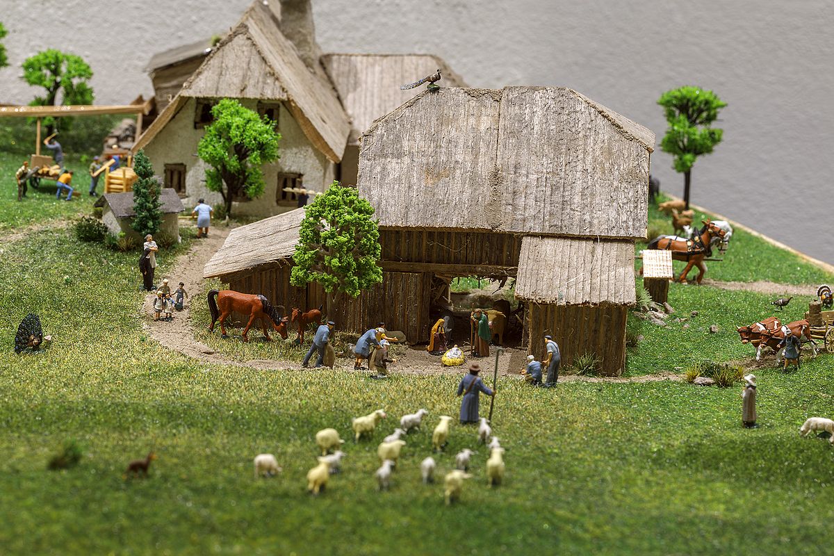 Nachdem Georg die Originalpläne von 1830 und Fotographien aus der Zeit um 1880 vorlagen, begann er, die Gebäude maßstabsgetreu nachzubauen und in eine Gesamtdarstellung zu arrangieren. So wird in diesem als Wimmelbild angelegten Diorama das harte, karge Leben auf dem Land anschaulich begreifbar.