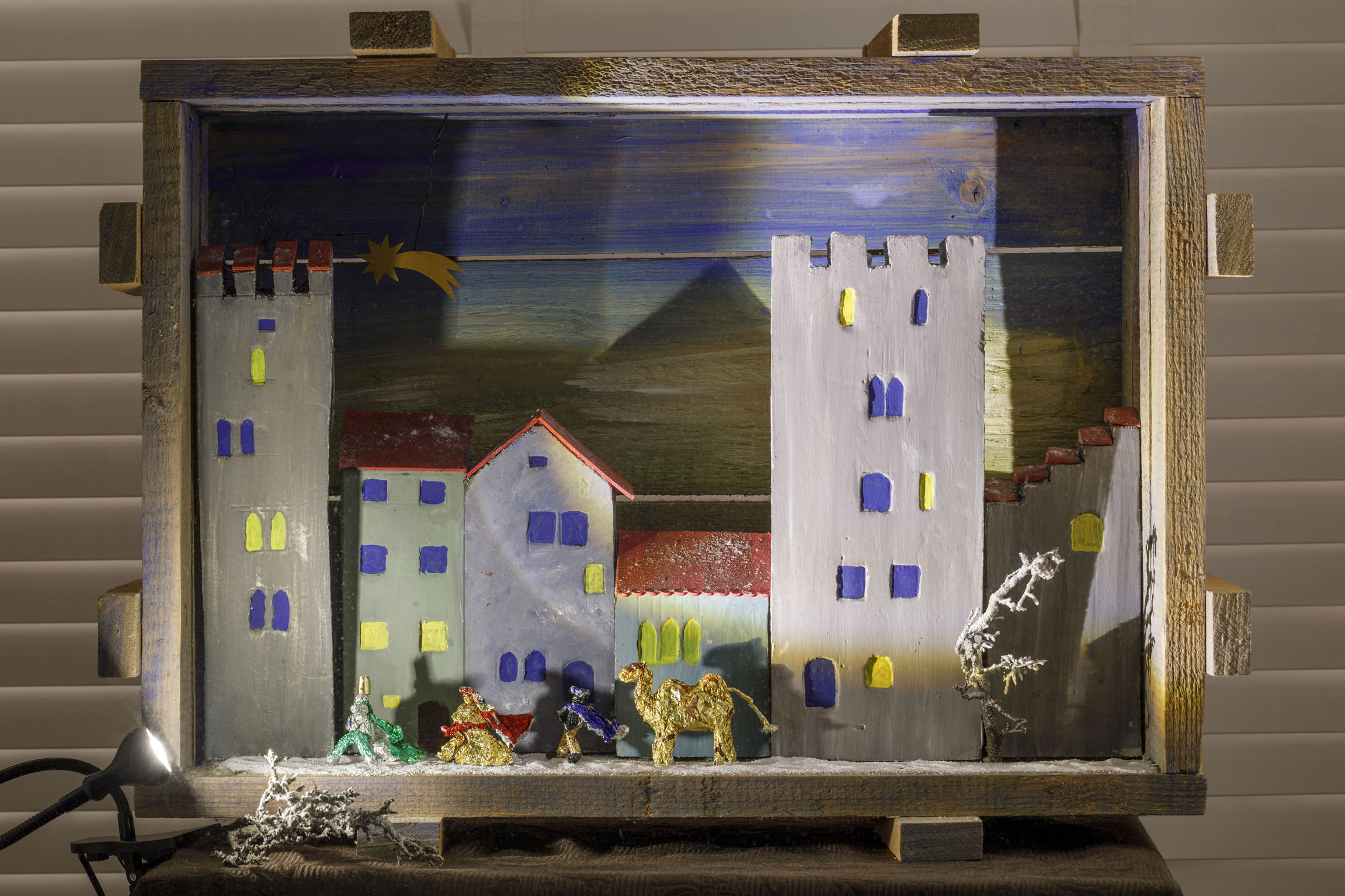 Die Krippe zeigt die Szene "Und sie folgten zum Stern“ und wurde aus "Abfall" hergestellt – eine sehr sinnvolle und schöne Wiederverwertung!