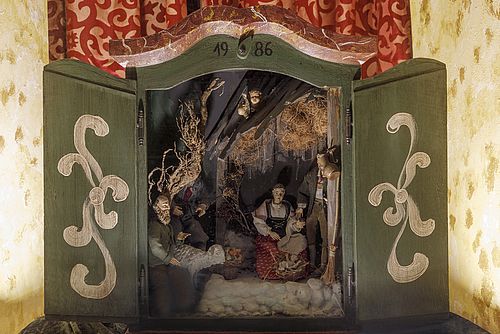 Hier wird das Geschehen der HL. Nacht in einem kleinen Bauernschrank gezeigt.