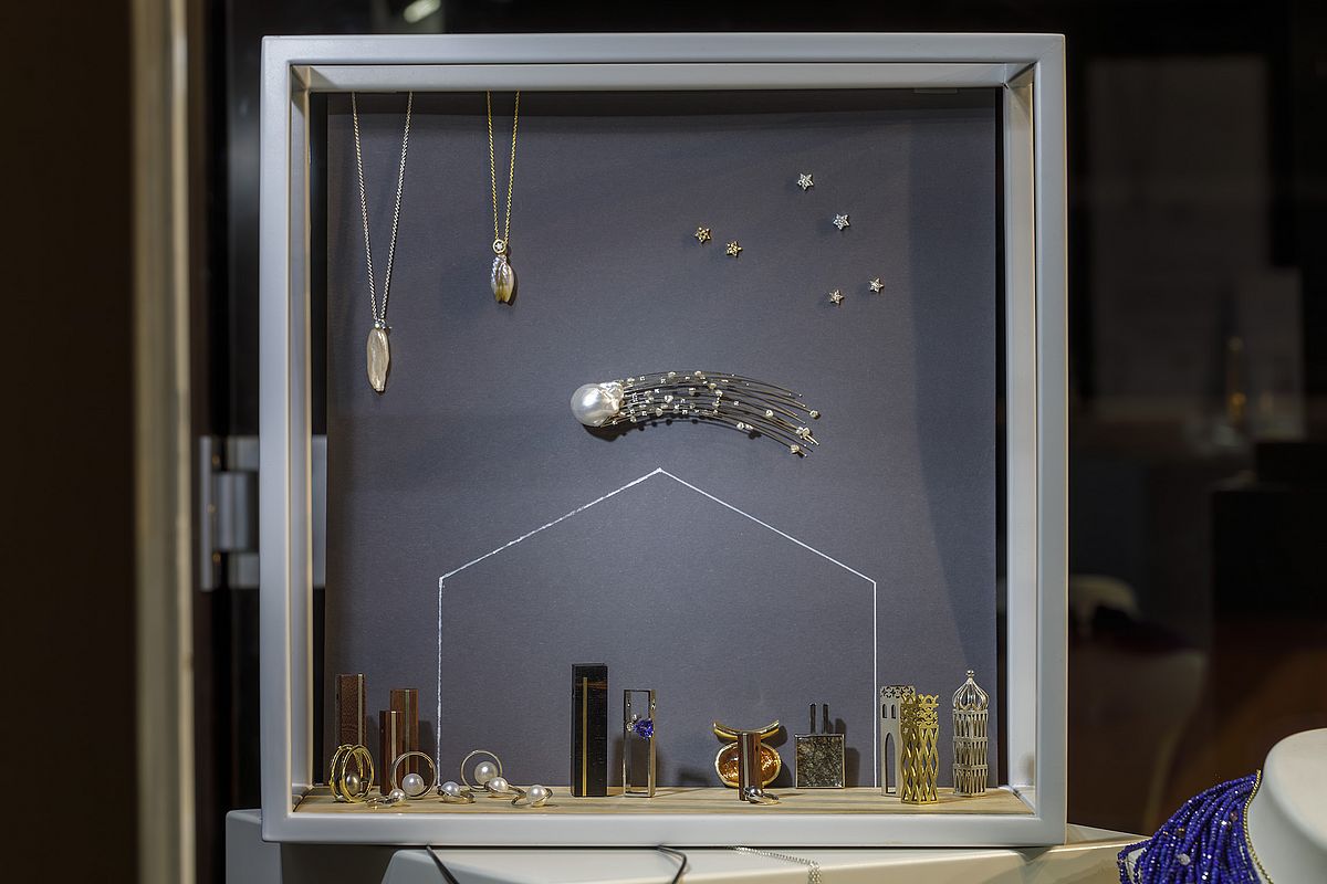Über 20 Figuren aus Gold, Silber, Perlen und Edelsteinen sowie -hölzern wurden in der eigenen Werkstatt gefertigt. Jede der Figuren kann als Einzelschmuckstück getragen werden und ist ca. 2-5cm groß (Anhänger/ Broschen/ Ohrschmuck).