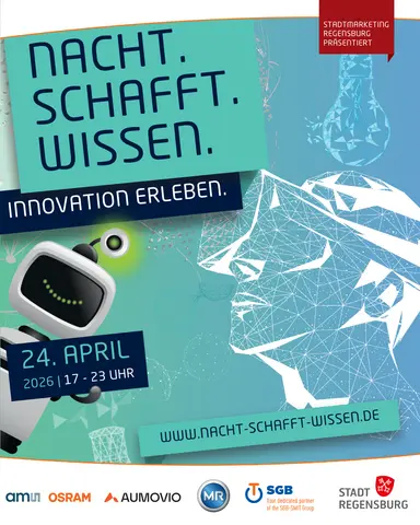 Unternehmen, Hochschulen und Forschungseinrichtungen öffnen von 17 bis 23 Uhr ihre Pforten. An 17 Standorten können die Besucherinnen und Besucher bei Führungen, Experimenten, Ausstellungen, Vorträgen und Shows in die Welt voller Wissenschaft und Technik eintauchen. Über 200 verschiedene Programmpunkte spiegeln auch 2026 wider, was Regensburg an technischen Innovationen zu bieten hat.